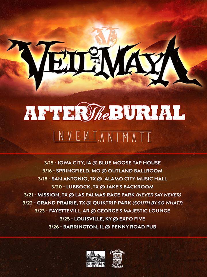 The metal band, Veil Of Maya, has announced a short U.S. tour, for this spring. After The Burial and Invent, Animate will be joining the tour, as support. You can check out the dates, details and poster, after the break.