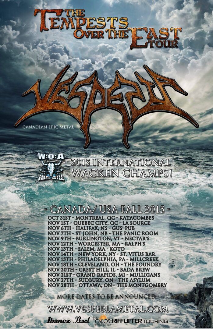 The metal band, Vesperia, have announced a North American tour, called “The Tempests Over The East Tour,” for October and November. The tour is in support of their newest EP, The Iron Tempests. You can check out the dates, details and poster, after the break.
