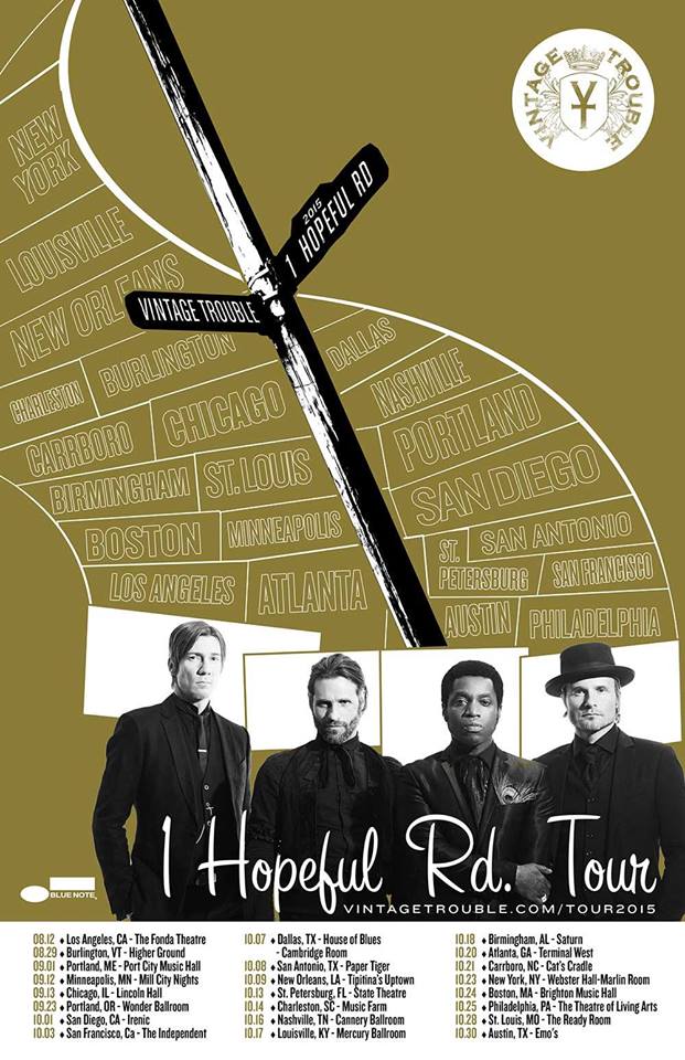 The rock band, Vintage Trouble, have announced a North American headlining tour, starting in August, as well as dates supporting AC/DC’s “Rock Or Bust World Tour.” They will be supporting their upcoming album, 1 Hopeful Rd. You can check out the dates, details and poster, after the break.