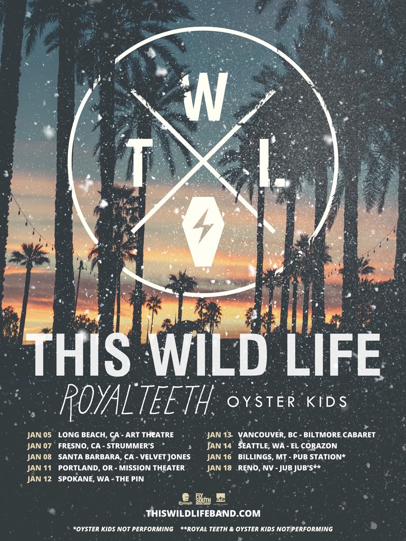 The acoustic rock duo, This Wild Life, has announced a West Coast North American tour, for January. Royal Teeth and Oyster Kids will join select dates of the tour, as support. You can check out the dates, details and poster, after the break.