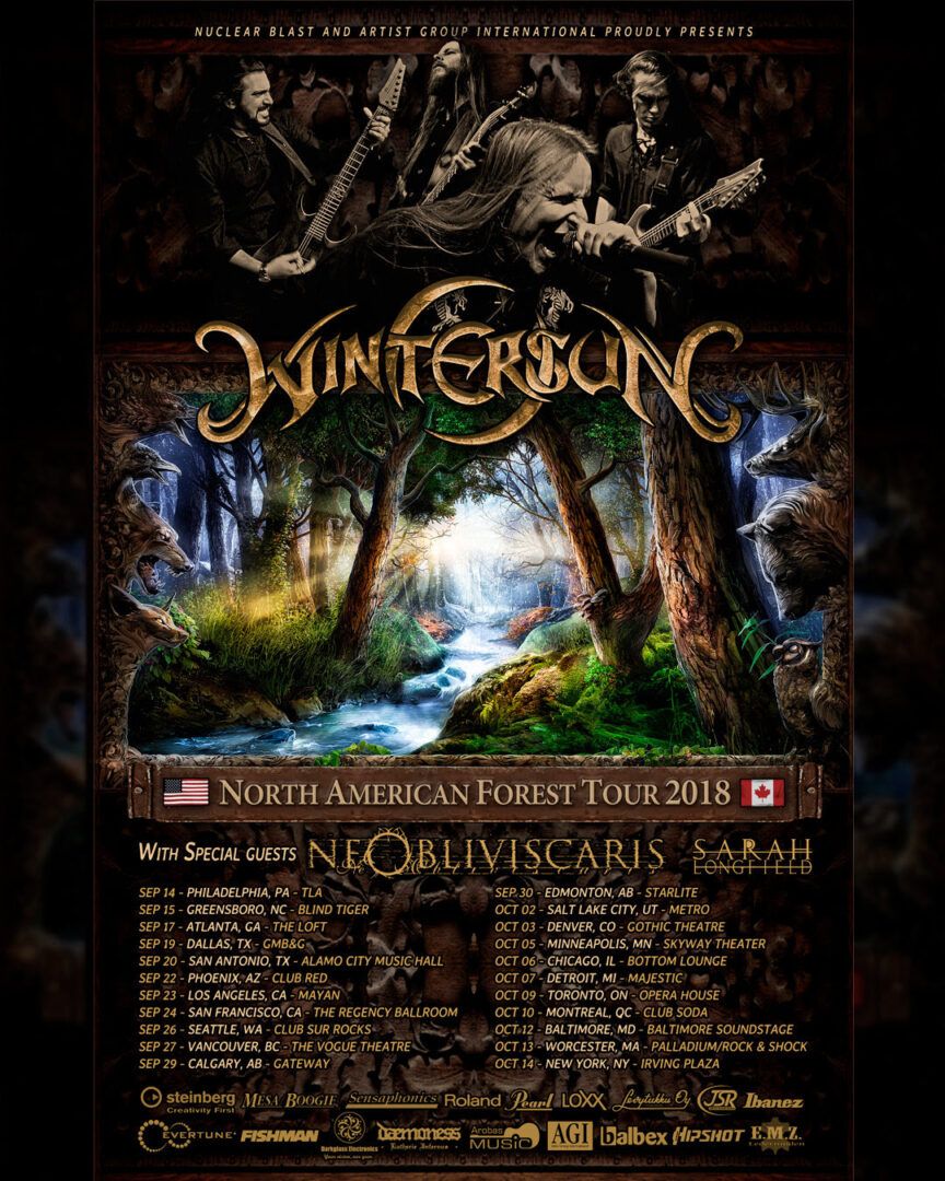 The heavy metal band, Wintersun, has announced a headlining North American tour, called the “North American Forest Tour 2018”, for September and October. Ne Obliviscaris and Sarah Longfield will be on the tour, as support. The band is touring in support of their latest album, The Forest Seasons. You can check out the dates, details and poster, after the break.