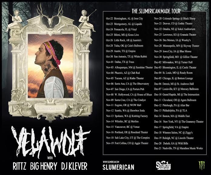 The hip-hop artist, Yelawolf, has announced a North American tour, called “The Slumerican Made Tour,” for this winter. He will be touring in support of his upcoming second album, Love Story. Rittz, Big Henry and DJ Klever are set to be the opening acts. You can check out the dates, details and poster, after the break.