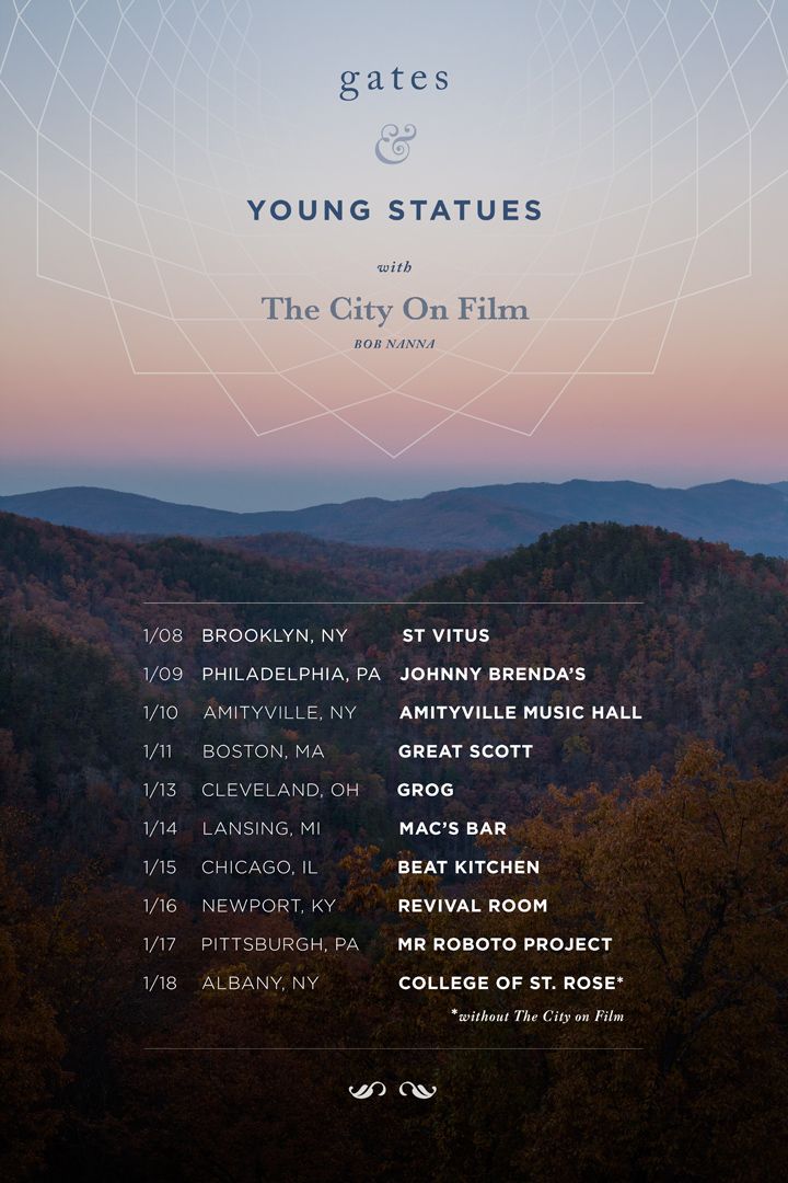 The indie rock band, Young Statues, has announced a short co-headlining U.S. tour with Gates, for this January. They will be touring in support of their album, The Flatlands Are Your Friends. The City on Film (Bob Nanna) will be joining the tour, as support. You can check out the dates, details and poster, after the break.