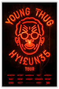 The hip hop artist, Young Thug, has announced a U.S. tour, called the “Hy!£UN35 Tour,” for May. He will be touring in support of his upcoming debut album, Hy!£UN35. You can check out the dates, details and poster, after the break.