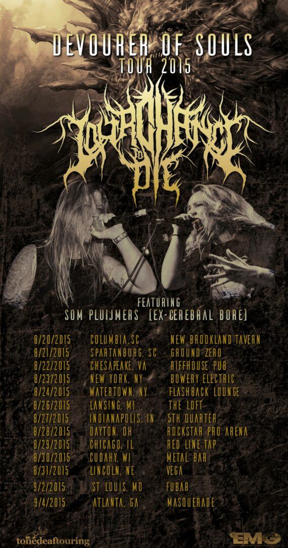 The death metal band, Your Chance to Die, has announced U.S. summer tour, for later this month. Simone Pluijmers (ex-Cerebral Bore vocalist) will be handling vocals for Missi on this tour, since Missi couldn’t do the tour. This will be Simone’s first time back in the United States since parting ways with Cerebral Bore. You can check out the dates, details and poster, after the break.