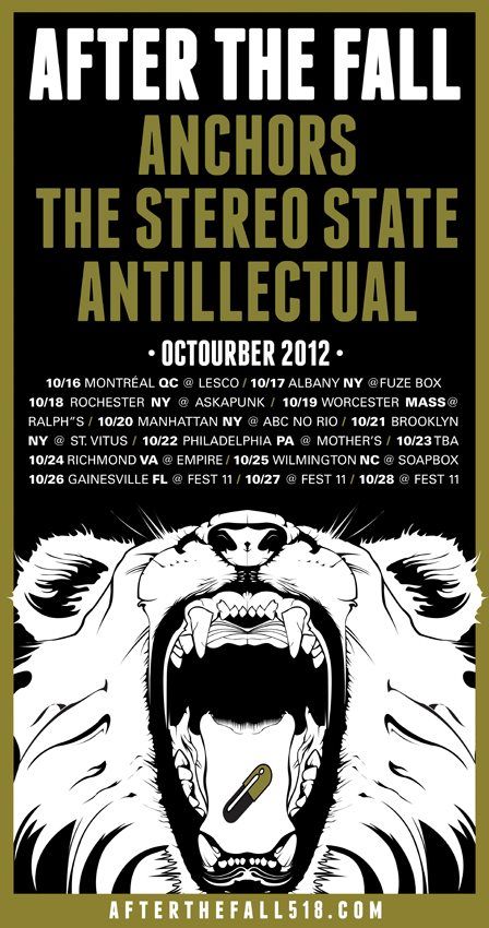 After The Fall OCTOURBER 2012 – 1st ROAD BLOG from The Stereo State While The Stereo State, Anchors, After The Fall and Antillectual are on their fall tour together called OCTOURBER 2012, they will be writing a rotating Road Blog exclusively for us. Each band will write a band for each day of…
